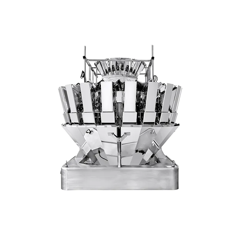 The 20-head combination weigher has two weighing modes. One is the mixing mode. The weighing range of the mixing mode is 20-2000g. According to the material, the maximum weighing speed can reach 65 bags/minute. Another weighing mode is a high-speed mode for a single material, the weighing range is 10-1000g, and the maximum weighing speed can reach 120 bags/min. Both models can be connected to the twin packaging machine, which can be used for weighing or packaging, forming a simple weighing and packaging system.