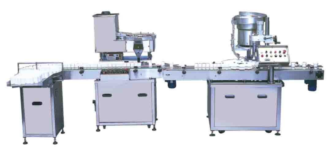 | KDV-5(automatic counting & capping machine) is integrated KDC-101(counting machine), conveyor, feeding bottle turn table, automatic capping machine and electrical control to reach tablet automatic counting, bottle capping machinery line.