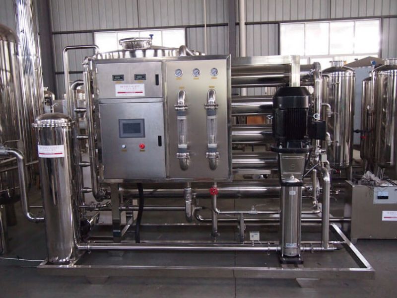 It is mainly composed of the following equipments:pre-treatment system (water tank,multi-medium filter, active carbon filter, ion exchanger, millipore filter), membrane separation system (ultra filter, nanometer filter, RO system), electrodialysis device, sterilization system (UV device, ozone device) ,product water tank and so on.