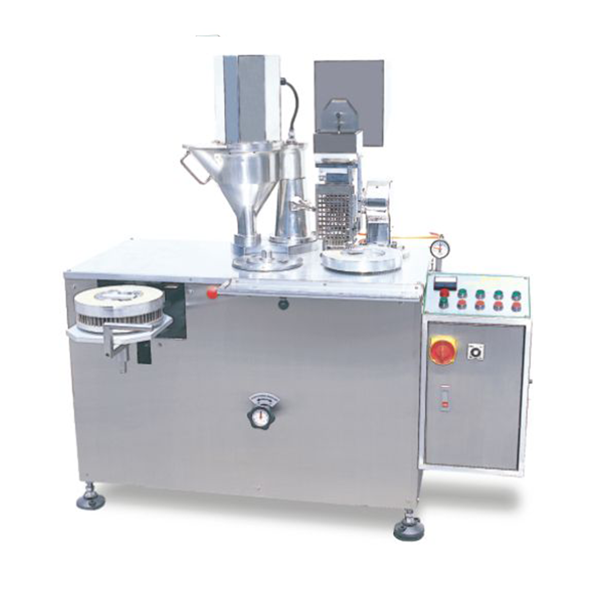 This machine can fill capsules from sizes #00 to #4. Different filling weights can be adjustable without changing parts.